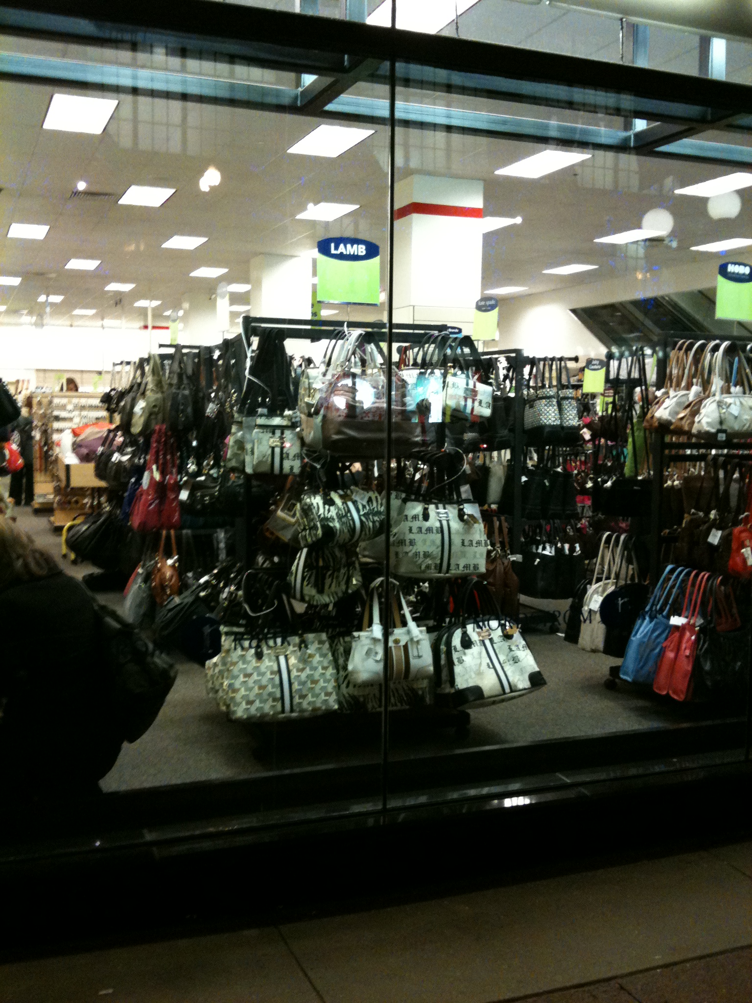 Lastly, the Nordstrom’s window display was nonexistent. They just had the racks of apparel right up to the windows. Interesting in that the product itself is the display. It did appear that the labels of the different brands attached to the top of each rack were oriented so that a passerby can easily read them. Even though this display was the most visually full it didn’t seem to catch people’s attention. Perhaps it was just too much so that people didn’t know what to look at.